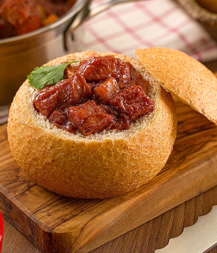 Abra uma tampa no topo de cada pão e faça uma cavidade na base.