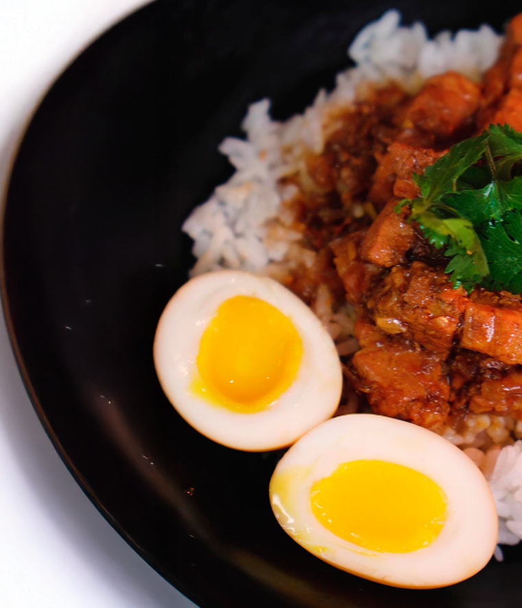 Finalize adicionando o seu lu rou fan sobre o arroz branco oriental cozido, acompanhado de ovo e coentro. Se preferir, adicione picles de vegetais e cebolinha picada. Agora é só servir esse prato tradicional asiático e se surpreender com o sabor.